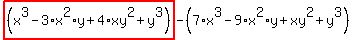 For tutors: simplify_cartoon( (x^3-3x^2y+4xy^2+y^3)-(7x^3-9x^2y+xy^2+y^3) )