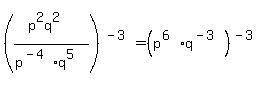 -> SOLUTION: The question is (p^2q^2/p^-4q^5)^-3. Can you help?
