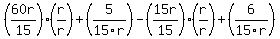 -> SOLUTION: I need help with this problem: Simplify (4r+1/3r)-(r-2/5r)