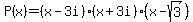 P%28x%29+=+%28x-3i%29%28x%2B3i%29%28x-sqrt%283%29%29