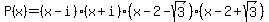 P%28x%29+=+%28x-i%29%28x%2Bi%29%28x-2-sqrt%283%29%29%28x-2%2Bsqrt%283%29%29