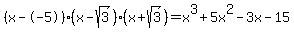 Algebra ->  Polynomials-and-rational-expressions -> SOLUTION: Find a polynomial function of degree 3 with the given number as zeros? -5, sqrt3,-sqrt3       Log On