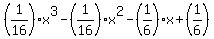 You can put this solution on YOUR website! (1/4x^2 - 2/3)*(1/4x - 1/4)