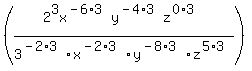 You can put this solution on YOUR website! Simplify: First, make all of the negative exponents positive by moving them down or up, as appropriate. Replace the with 1 and cancel factors in the numerator and denominator where appropriate. Now we'll cube every thing.