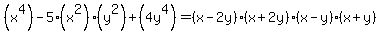 The problem is: factor completely; (x^4)-5(x^2)(y^2)+(4y^4)