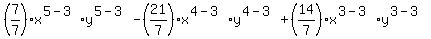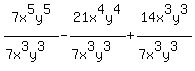 -> SOLUTION: This one is divide, I do not get it. 7x^5y^5-21x^4y^4+14x^3y^3 ___________ ______ 7x^3y^3