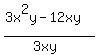 Question 931140: I am in need of help solving the following equation. 3x^2y-12xy divided by 3xy