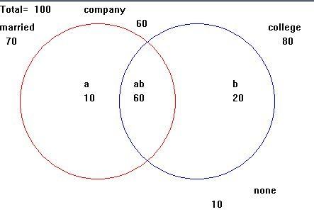 Question 1103738: I need a Venn diagram for there are 100 people in a company. 70 are married, 80 are college grads and 60 married and college grads Found 2 solutions by richwmiller, jim_thompson5910:Answer by richwmiller(17219) (Show Source):