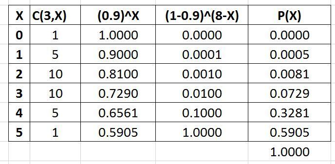 Question 1103914: 90% of the voters favor Ms. Stein. If 5 voters are chosen at random, find the probability that at most 2 voters support Ms. Stein. Answer by Fombitz(32388) (Show Source):