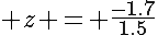 Compute the z score with x = 4, mu = 5.7 and sigma = 1.5 which is approximate to 2 decimal places