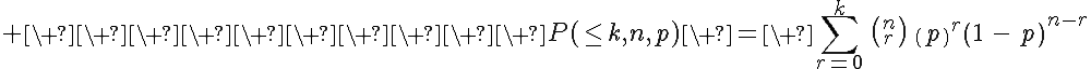 The probability of at most successes in trials where the probability of success on any given trial is is given by: