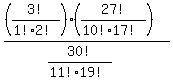 Question 1147765: A bag contains 3 Cherry Starbursts and 27 other flavored Starbursts. 11 Starbursts are chosen randomly without replacement. Find the probability that 1 of the Starbursts drawn are cherry. Answer by VFBundy(438) (Show Source):