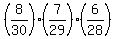 Question 1161556: There are 10 red jelly beans, 8 blue jelly beans, and 12 white jelly beans in a jar, and you pick out three jelly beans, one at a time, without replacement. What is the probability that they are all blue?