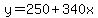 Lewis is saving for a down payment of $8,750 on a house. The initial amount of money he has saved is $250, and the amount of money he plans on saving every month is $340. To model the situation, he created this equation, where x represents the number of months and y represents the total amount of savings: