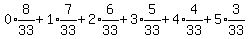 P[X > 2] = 1 - P[x < F(2) = 1 - 21/33 = 33/33 - 21/33 = 12/33 = 4/11