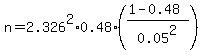 n = .2496 / (.05/2.326347)^2 = 540.323134.