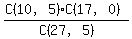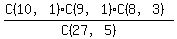 As a check when setting up the calculation for any problem like this, note that the numbers in the numerator must match the numbers in the denominator. In the preceding example, 10+9+8=27 and 1+1+3=5.