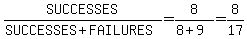 So since odds against are 9:8, then FAILURES = 9 and SUCCESSES = 8