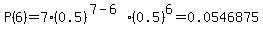 P(6<= x <=7) = 1 - P(0<= x <=5) = = 1/16