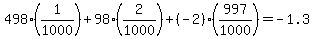 Question 381418: One thousand raffle tickets are sold for $2.00 each. One grand prize of $500 and two consolation prizes of $100 each will be awarded. Jeremy purchases one ticket. Find his expected value. Found 2 solutions by edjones, robertb:Answer by edjones(8007) (Show Source):