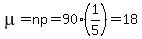 You can put this solution on YOUR website! The experiment follows a binomial experiment with n = 90, p = 1/5, and q = 4/5.