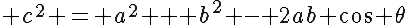 where theta is the angle opposite c. Replace theta with 90 degrees, and you have the Pythagorean theorem (cos 90 = 0).
