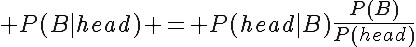 We know that P(B) = 1/2 because coins A and B are equally likely to be picked. P(head) is also 1/2 because
