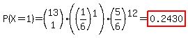 SOLUTION: A number cube is tossed 13 times. What is the probability of obtaining exactly 1 five? Give the answer as a four-place decimal.
