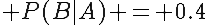 -> SOLUTION: Suppose that P(A) = 0.3, the P(B) = 0.4, and the probability of the intersection of A and B = 0.12, find P(B|A). Write your answer as a decimal.
