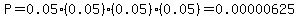Question 909821: The probability of getting a defective tire is .05. What is the probability that after you purchase 4 new tires that they are all defective?