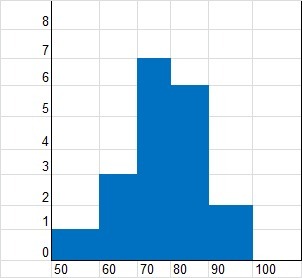 81 70 73 89 68 79 91 59 77 73 80 75 88 65 82 94 77 67 82 a. What is a histogram of the data that uses intervals of 5?
