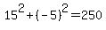 (2) +15%5E2+%2B+%28-5%29%5E2+=+250+