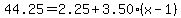 Question 629666: Mario paid $44.25 in taxi fare from the hotel to the airport. The cab charged $2.25 for the first mile plus $3.50 for each additional mile. How many miles was it from the hotel to the airport? Found 2 solutions by ewatrrr, lwsshak3:Answer by ewatrrr(24785) (Show Source):