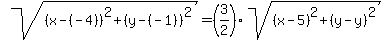 For each point (x,y) its distance from the point (-4,-1) is 3/2 times its distance from the line x=5 Found 2 solutions by josgarithmetic, MathTherapy:Answer by josgarithmetic(39629) (Show Source):