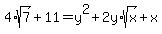 +4%2Asqrt%28+7+%29%2B11+=y%5E2%2B2y%2Asqrt%28+x+%29%2Bx+