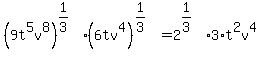 I need step by step help to simplify a problem cubed root of 9t^5v^8 times the cubed root of 6tv^4.