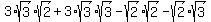 3%2Asqrt%283%2A2%29+%2B+3%2Asqrt%283%2A3%29-+sqrt%282%2A2%29-+sqrt%282%2A3%29 Combine the roots.