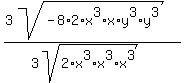 You can put this solution on YOUR website! Can you help me simplify the cubed root of -16x^4y^6 / divided by the cubed root of 2x^9?