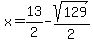 x = [13 +- sqrt(129)]/2