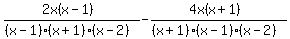 B: (2x)/(x^2-x-2) minus (4x)/(x^2-3x+2)