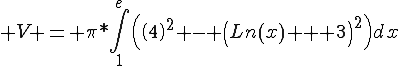 Question 1085933: Set up, but do not evaluate, the integral which gives the volume when the region bounded by the curves y = Ln(x), y = 1, and x = 1 is revolved around the line y = −3.