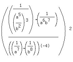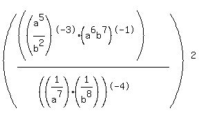 [(a^5b^-2)^-3 (a^6b^7)^-1 / (a^-7b^-8)^-4]^2