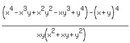 -> SOLUTION: Let x, y, z be nonzero real numbers such that {{{x + y + z = 0}}}, and {{{xy + xz + yz != 0}}}. Find all possible values of {{{(x^5+y^5+z^5)/((xyz)(xy+xz+yz))}}}.Enter all possible