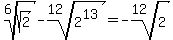 You can put this solution on YOUR website! So I believe you would say this as "the sixth root of the square root of 2 minus the twelfth root of 2 to the thirteenth power". Are you supposed to estimate this using a calculator? If not, I think the most you can simplify it is 2^(1/12) - 2^(13/12). You can do that because, for instance, the square root of 2 is 2^(1/2). So "the sixth root of the square root of 2" is (the square root of 2)^(1/6), which is (2^(1/2))^(1/6). So you multiply the exponents and get 2^1/12. Then you work similarly with the second part.