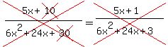 {{{(5x+10)/(6x^2+24x+30)}}},,, Does that reduce to {{{(5x+1)/(6x^2+24x+3)}}}