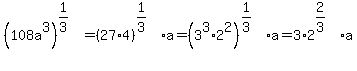 Question 433706: im not sure how to put the cube root sign in, but the question im having problems on is adding these two expressions... cubed root of 4a^6 and cubed root of 108a^3 (all under radical) im not sure if you can combine the 108a