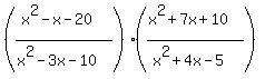 -> SOLUTION: x^2-x-20 x x^2+7x+10 -------- --------- x^2-3x-10 x^2+4x-5 x^2+x-12 -------- 2x^2-3x-9