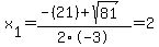 x%5B1%5D+=+%28-%2821%29%2Bsqrt%28+81+%29%29%2F2%5C-3+=+2