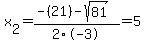 x%5B2%5D+=+%28-%2821%29-sqrt%28+81+%29%29%2F2%5C-3+=+5