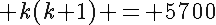 Since 5700 = 75*76, we obtain k = 75 through a guess-and-check-ish method. Note that we could use the quadratic formula to solve this, but it is rather tedious. Given that the answer is an integer, the best method would be to find two factors of 5700 that are 1 apart. Also, solving the quadratic k^2 + k - 5700 = 0 by factoring is also pointless since it reduces to the previous problem.